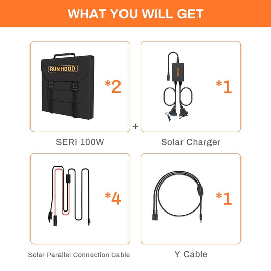 Runhood Power SERI 100*2 Portable Solar Panels + SC200 Recharging Battery - 2025